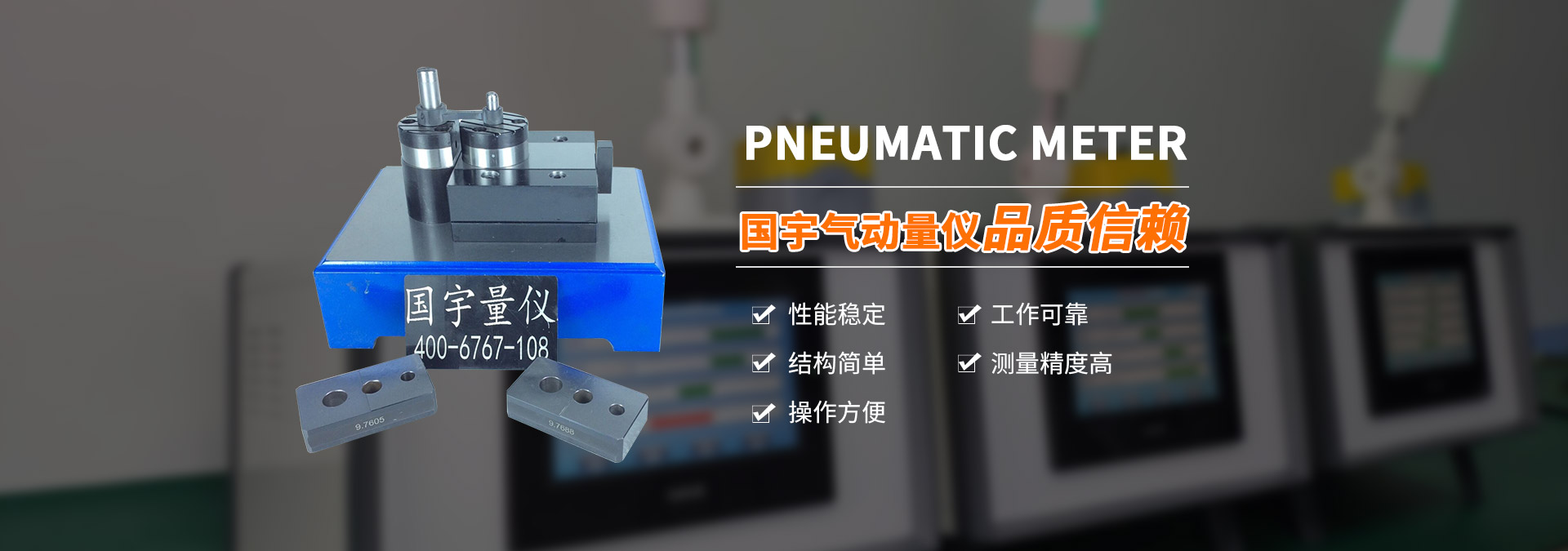 國宇產(chǎn)品 氣動量儀產(chǎn)品主要展示了各種規(guī)格氣電工作站,氣電電子等的量儀。氣動量儀操作方法簡單,讀數(shù)容易,能夠進(jìn)行連續(xù)測量,很容易看出各尺寸是否合格。能夠?qū)崿F(xiàn)測量頭與被測表面不直接接觸,減少測量力對測量結(jié)果的影響,同時(shí)避免劃傷被測件表面,對薄壁零件和軟金屬零件的測量尤為適用。